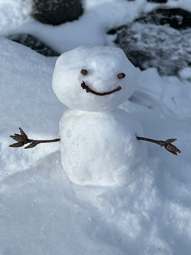 我和太太都從未造過雪人,但太太很有美術天份,從讀書時代已精於各種美術製作,於是我便負責落手做,太太則運用她的美術細胞不停給我指導,漸漸地一個雪人的頭和軀體便造了出來,之後以大自然中的原材料再加上眼睛、嘴、一雙手,就這樣一個小雪人便誕生了,雖然手工較為粗糙,但也可算是我們的第一個雪人作品。第二天,我們在另一個地方又造了一個體積略為大一點的雪人,今次更熟練,完成後我倆都很開心。