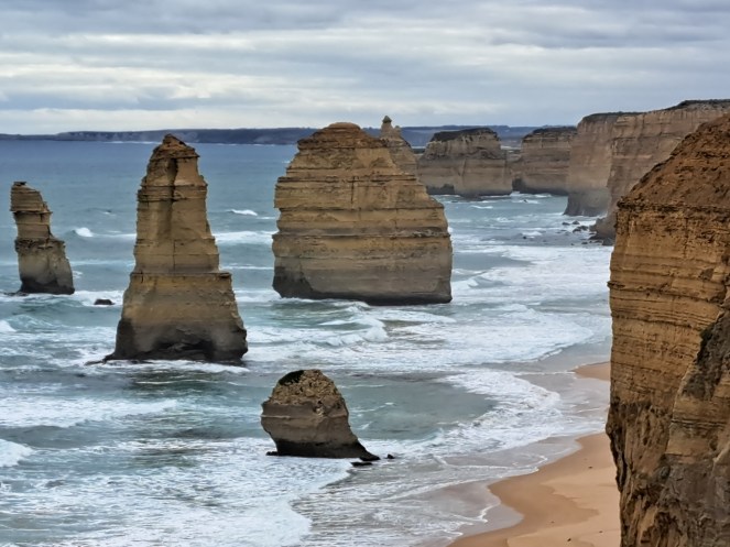 幸而加入旅程後,沿著「世界上風景最美的海岸公路」大洋路尋覓,仍可與被譽為「人生必去」的「十二門徒石」擁抱。這一系列斷壁石灰岩石,是經過幾百萬年自然風化和海水侵蝕形成,縱擁有十二門徒美名,但由於經歷長期海水侵蝕,已由最初「九位」,2005年、2009年各倒塌一塊後,目前只得「七個」。聞說,當地最初只為觀光需要而命名,與信仰無關,自此,卻吸引了不少遊人「朝聖」。