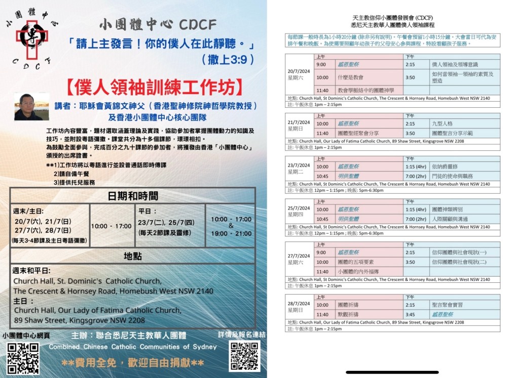 悉尼共分三個教區,分別是Greater Sydney、Parramatta 以及Broken Bay。由於交通及地域限制,我們大部份的活動都是在Greater Sydney 和Parramatta 進行。