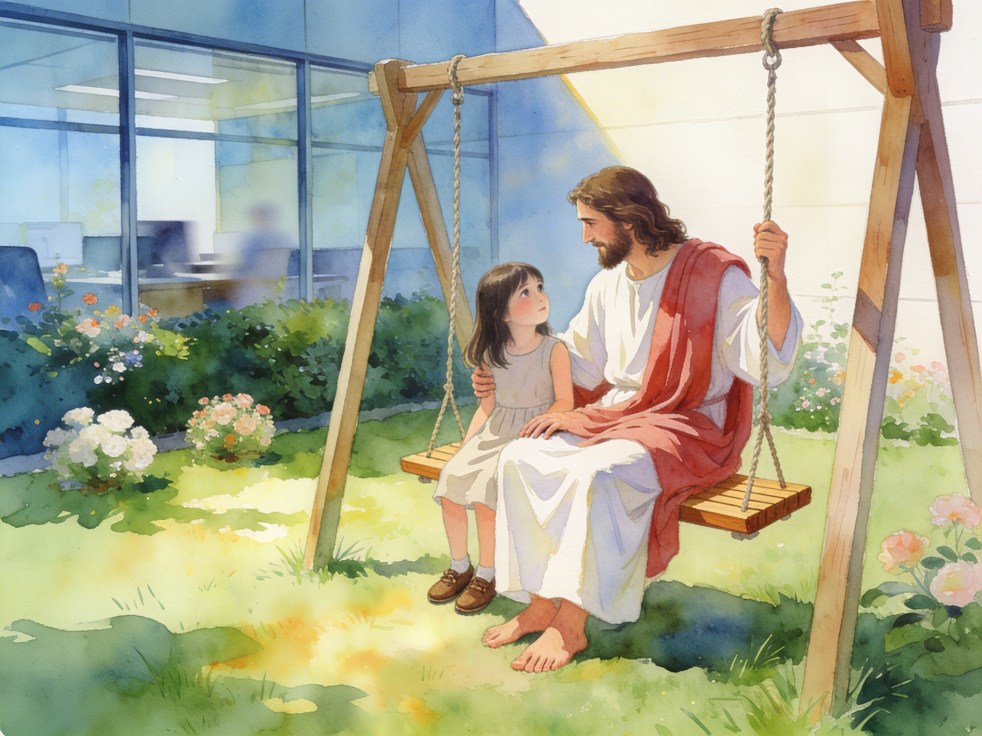 終於,天父看見凌潔,祂溫柔地笑笑,並遞上一件可愛的玩具,又介紹其他小孩子靈魂和她一起玩耍。