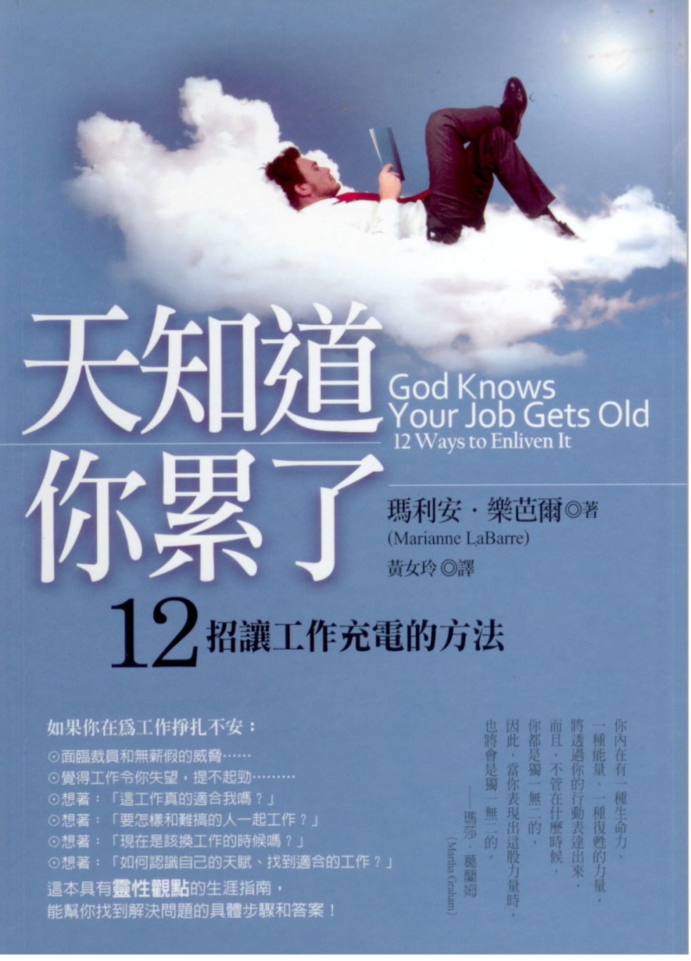 近年愛講「活化」,活化文物、活化古蹟,有想過我們的工作、生涯價值以致生命也需要活化嗎?在原地踏步或窒礙不前的時候,或工作上遇到各式各樣的掙扎不安,不禁疑問:「我入錯行嗎?」、「是時候要轉工了嗎?」、「要怎樣和難搞的人一起工作?」感到疲累倦透時,一如此書的英文名字——Your job gets old,你期望走出舒適區,循不同途徑「活化」自己的工作態度,重新活力依然地享受工作?「充電」相當於「活化」。