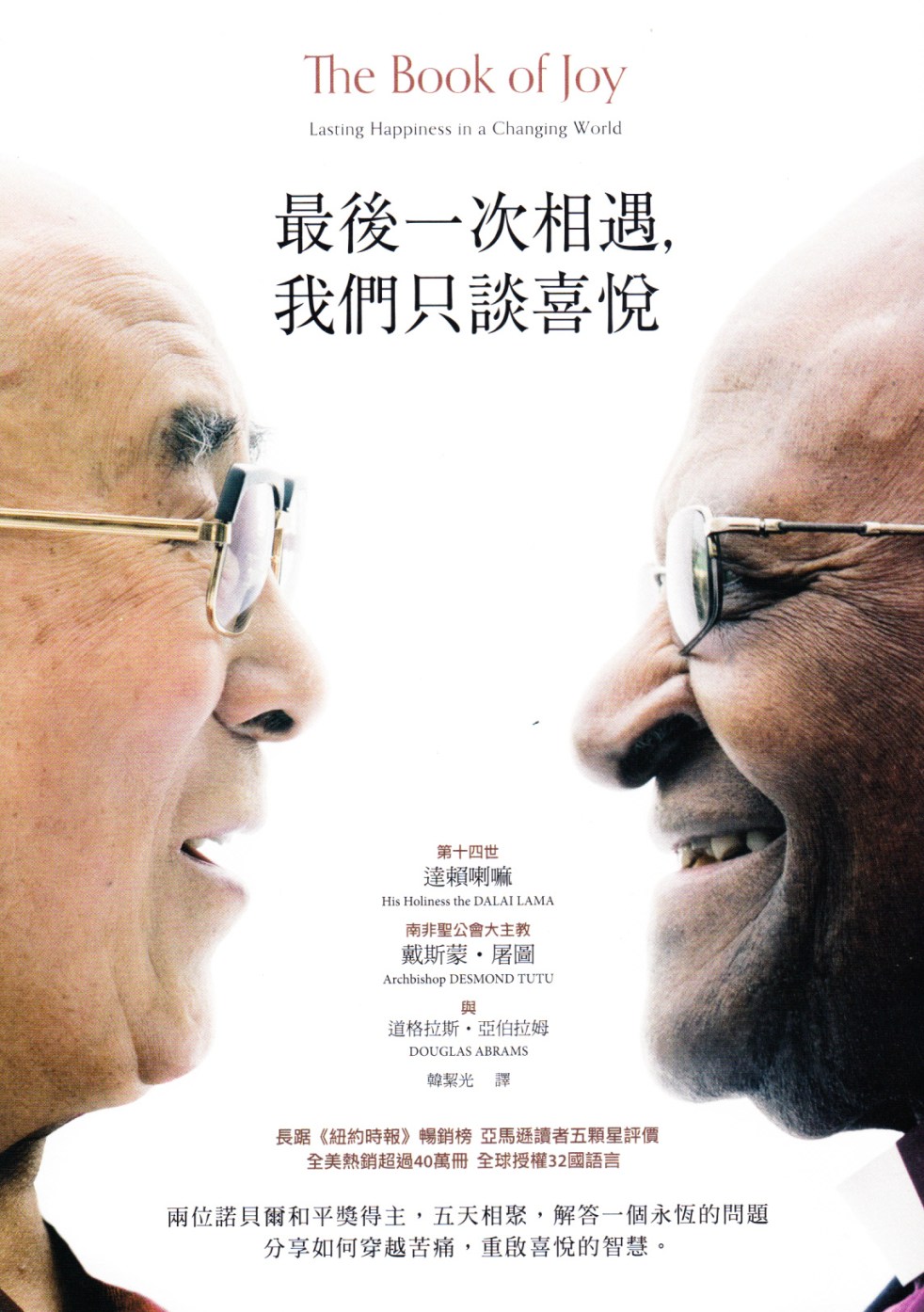 這本接近四百頁的巨著,來自兩位諾貝爾和平獎得主,分別是達賴喇嘛與南非聖公會大主教屠圖,二人一生都經歷不同層次及種類的苦難,由他們來講喜悅,足夠震撼人心,散發出來的睿智,令讀者如聽了扣動心弦的美妙樂章,深刻地打進人心。